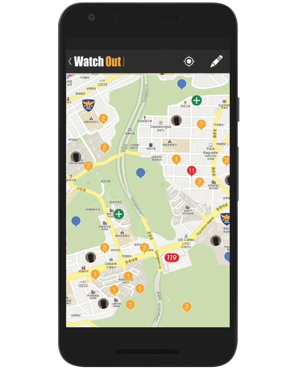 Watch Out is a service that protects you from sexual violence. It shows you every sexual criminals' whereabouts and information about reported sexual violence. I developed Android application and designed user experience for Watch Out.